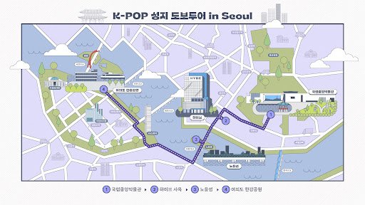 One official route example connects the National Museum of Korea, HYBE Headquarters, Nodeul Island, and Yeouido Hangang Park. Another highlighted route links Gyeongbokgung Palace, the National Museum of Korean Contemporary History, Gwanghwamun Square, Seoul City Hall, and N Seoul Tower. This kind of structure makes the K-pop section especially attractive for younger travelers because it blends fan interest, city storytelling, photo spots, and broader sightseeing into one experience.