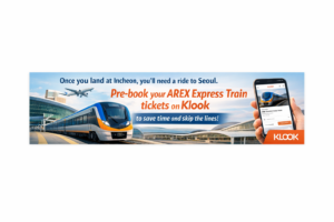 Once you land at Incheon, you’ll need a ride to Seoul. Pre-book your [AREX Express Train tickets on Klook] to save time and skip the lines.